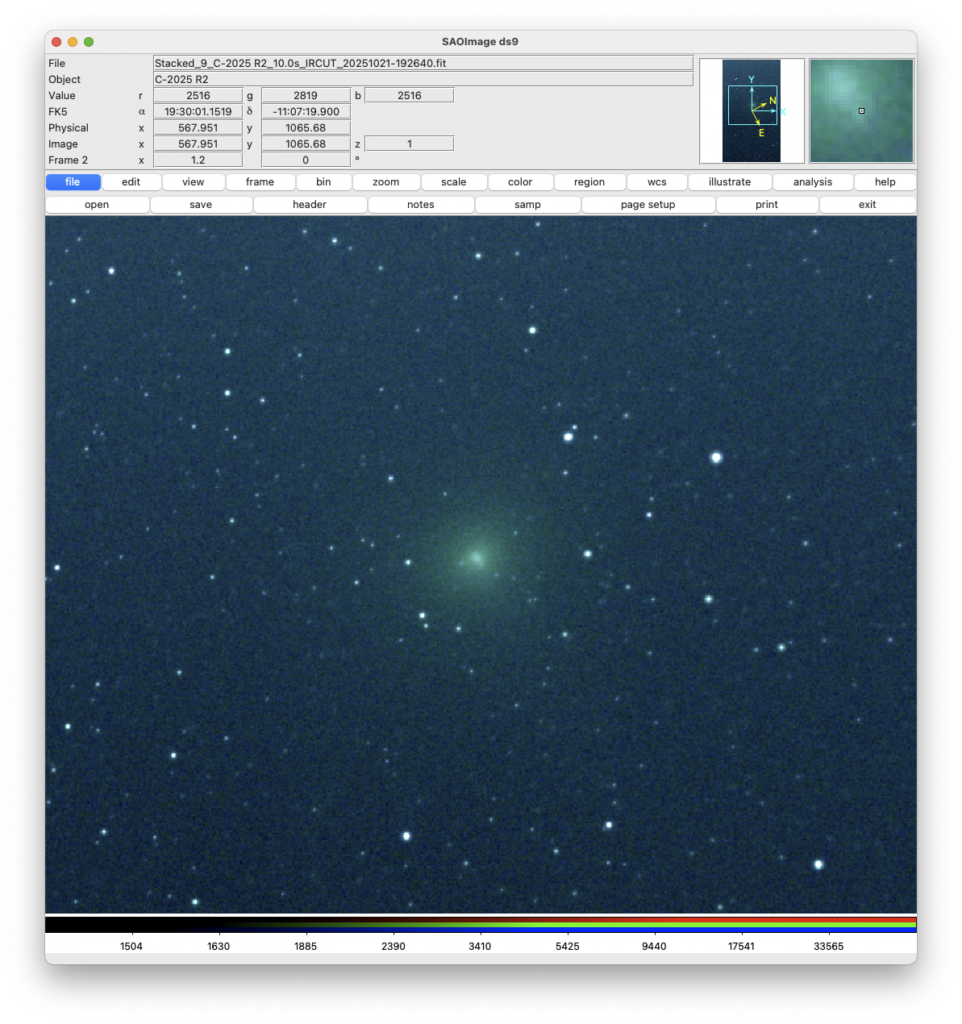 Para observar, ou registrar, olhe para o poente, assim que a noite cair no dia 20 de setembro. A estrela mais brilhante, imediatamente acima do horizonte, é Spica, a alfa da constelação de Virgem. Um pouco mais alto no céu, você encontrará o planeta Marte. E mesmo que você não os veja, aponte sua câmera e experimente diferentes tempos de exposição. Você eventualmente encontrará dois pontos borrados que claramente não terão o aspecto de estrelas. Você também provavelmente vai perceber uma tonalidade azul esverdeada nesses pequenos borrões! É isso! Você encontrou os cometas C/2025 K1 (ATLAS) e C/2025 R2 (SWAN).